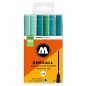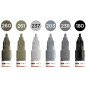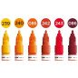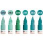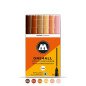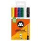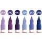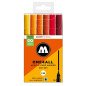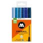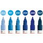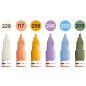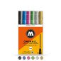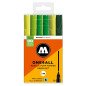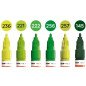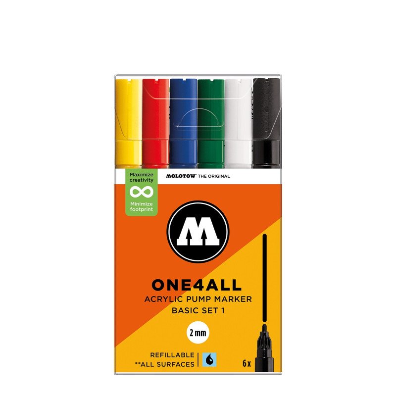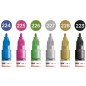 Komplektas - 6 vnt. Akrilo pagrindu. Linija - 2 mm. Pusiau blizgus. Labai neskaidrūs. Kapiliaru sistema. Labai greitai džiūsta. Skiedžiami vandeniu arba acetono. Tinka beveik visiems paviršiams.. Užpildymas min 50 k. Vidaus ir lauko naudojimui. Keičiamos galiukas. Pagaminta Vokietijoje