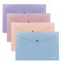 Aplankas (vokas) su plastikiniu spaustuku. Matmenys: 232x310mm. Pagamintas iš spalvoto plastiko. Skirtas laikyti nedideli kiekį dokumentų. Skaidri spalvos.