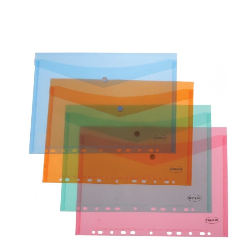 Vokelis dokumentams su spaustuku, horizontalus su europerforacija. Plastiko storis 180 mic. A4 formato.