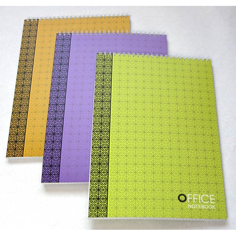 Bloknotas susegtas metaline spirale viršuje. Kartoninis tvirtas dviejų spalvų viršelis. A5 formato. Langeliais. 48 lapai.