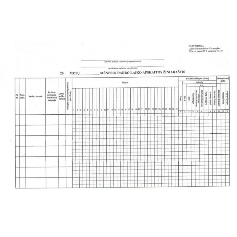 Mėnesio darbo laiko apskaitos žiniaraštis A4 14 asm.