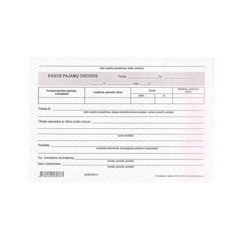 Kasos pajamų order.A5 SC(kopij.),50kompl.