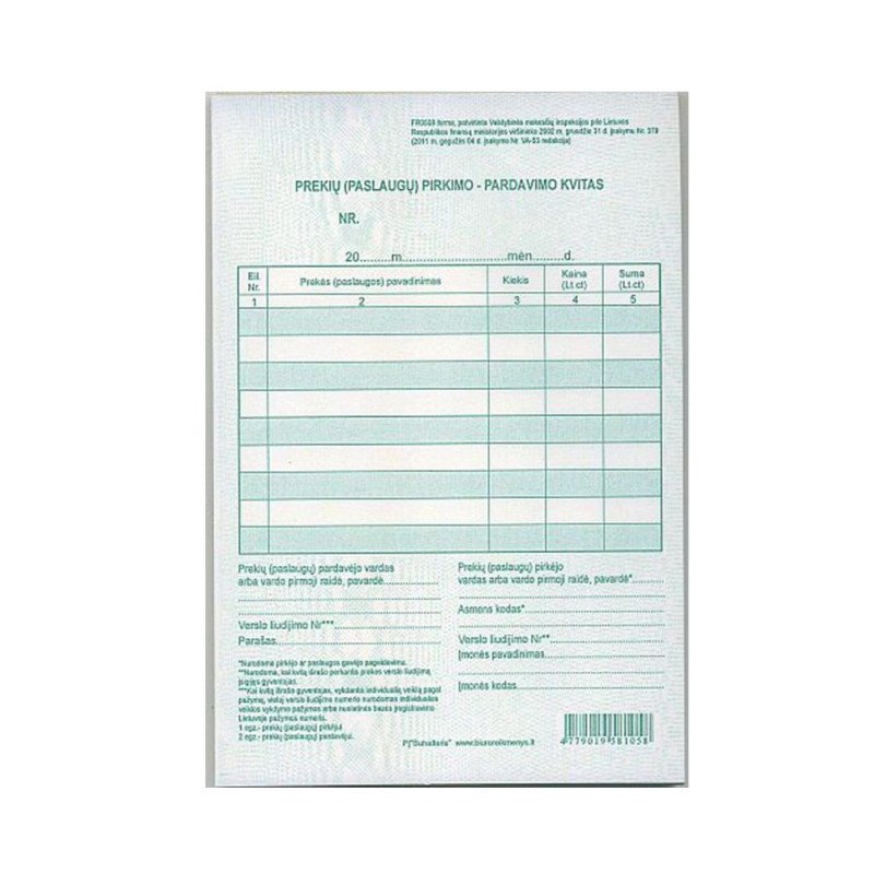 Prekių (paslaugų) pirkimo-pardavimo kvitai be Nr.
