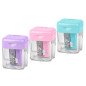 Plastikinis, ergonomiškas, originalaus dizaino viengubas drožtukas su dėžute drožlėms. Tinka grafitiniams bei spalvotiems įvairaus skerspjūvio pieštukams padrožti