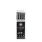 Komplektas - 4 vnt. Idealiai tinka itin kruopščių rašymo ir braižymo darbų atlikimui. Vienkartinis. Pigmentinis tušas. Greitai džiūna, atsparus šviesai ir vandeniui. Tinka dirbant su liniuotėmis ir trafaretais. Ergonominė laikymo zona. Patogi metalinė įsegėlė. Dežutėje -6 vnt.