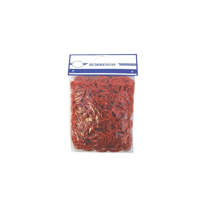 Pagamintos iš kokybiškos gumos. Skersmuo: 40 mm. Pakelyje vienos spalvos gumelės. Galimos 5 spalvos: natūrali, mėlyna, raudona, žalia, balta, (spalva bus parenkama atsitiktinai). Pakuotėje: 1000 g.