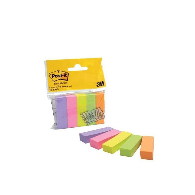 POST-IT popieriniai žymekliai Labai naudingi dokumentų klasifikavimui ir organizavimui. Spalvotos juostelės leidžia taikyti spalvinį kodavimą. Dideliame indekso rašymo plote galima surašyti tikslesnius komentarus, pastabas ir nurodymus. Matmenys 15 x 50 mm. 5 spalvų, 500 vienetų.