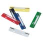 Tvirto plastiko pagrindas su metaline įsegėle. Yra 4 skirtingų spalvų: juoda, žalia, raudona, mėlyna. Atstumas tarp skylučių: 60 ir 80 mm. Matmenys: 150 x 38 mm.