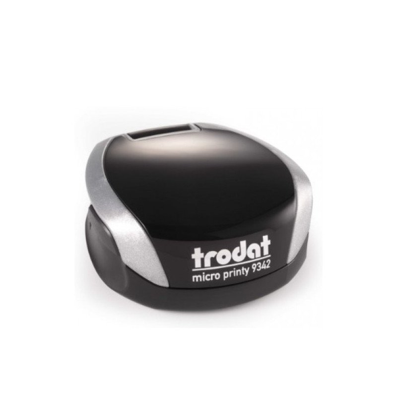 Naujo dizaino, ekologiškas, pagamintas iš perdirbto plastiko, ypač patogus nešiotis kišeninis apvalus antspaudas Trodat 9342. Korpuso spalva balta. Rašalo pagalvėlė mėlynos spalvos. Spaudo skersmuo 42 mm.