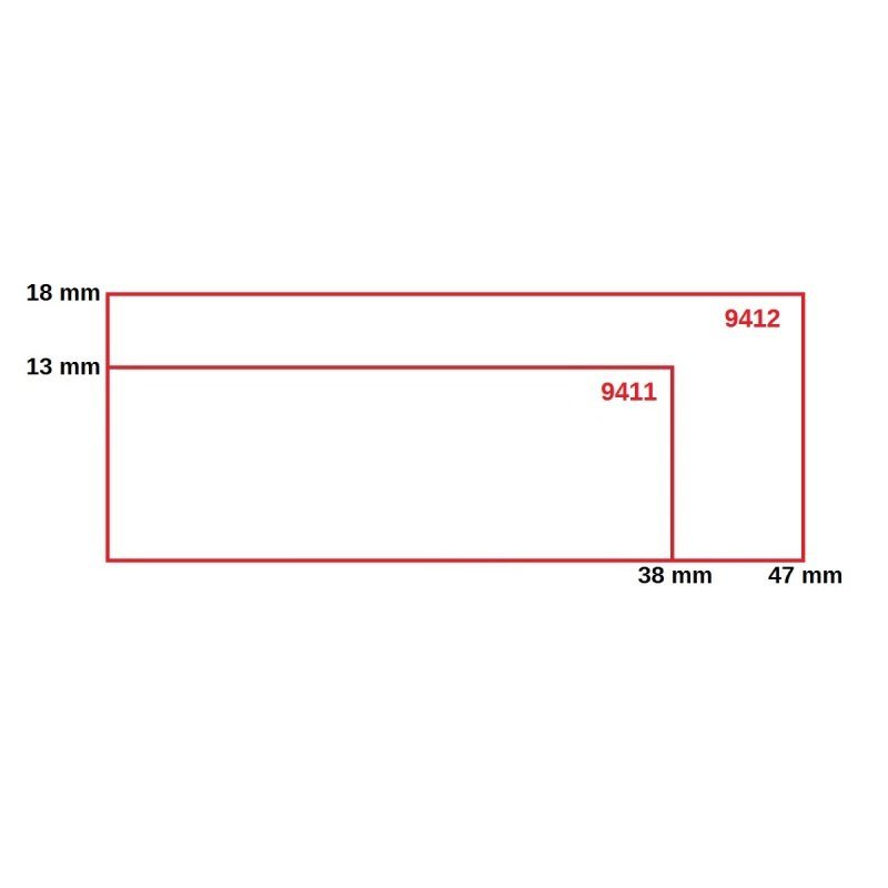 Spaudo dydis: 38 mm x 14 mm. Eilučių skaičius: 3.
