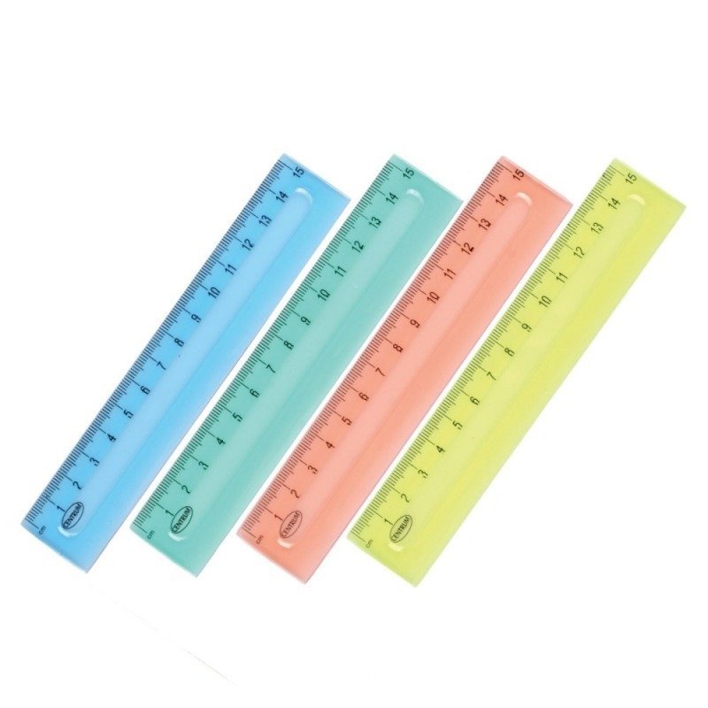 Skaidri liniuotė. 15 cm ilgis. Plastmasinė. Spalvoti