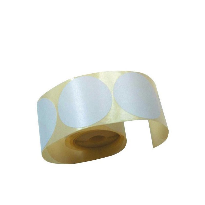 Apvalus. 53 mm rulonėlis. 500 lipdukų. Baltos spalvos.