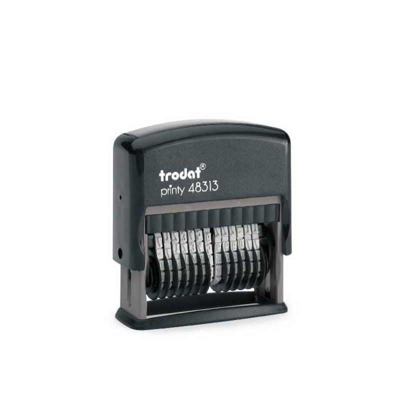 13 skaičių, ekologiškas, pagamintas iš perdirbto plastiko savidažis numeratorius Trodat 48313. Keičiama pagalvėlė 6/4817. Skaičių dydis 3,8 mm