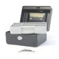 Pagaminta iš aukštos kokybės metalo. Užrakinama. Plastikinis dėkliukas - skirtukas pinigams bei monetoms. Matmenys: 82 x 192 x 262 mm. Spalva: juoda.