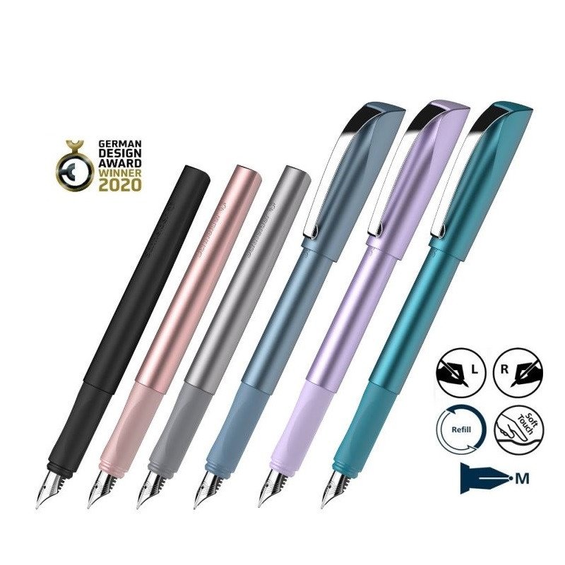Plunksnakotis su ergonomiška gumine laikymo zona, modernus dizainas. M dydžio sustiprinto plieno plunksna. Standartinės rašalo kasetės, mėlynos spalvos, trinamos. Tvirta metalinė įsegėlė. Puikiai tinka dešiniarankiams ir kairiarankiams.