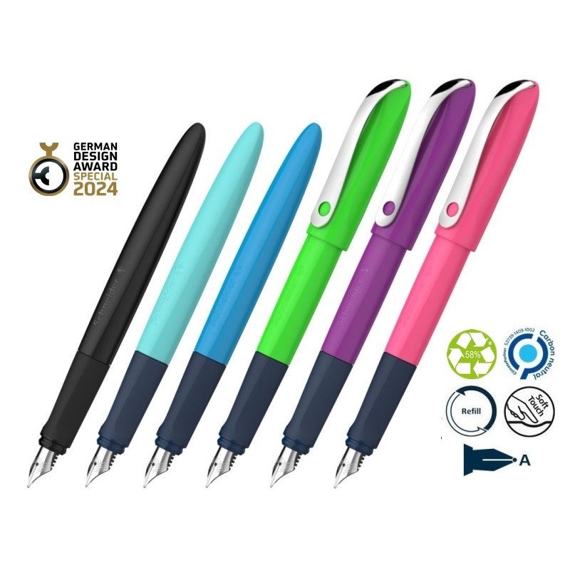 Plunksnakotis su ergonomiška gumine laikymo zona, modernus dizainas. A dydžio sustiprinto plieno plunksna. Standartinės rašalo kasetės, mėlynos spalvos, trinamos. Tvirta metalinė įsegėlė. Puikiai tinka dešiniarankiams ir kairiarankiams.