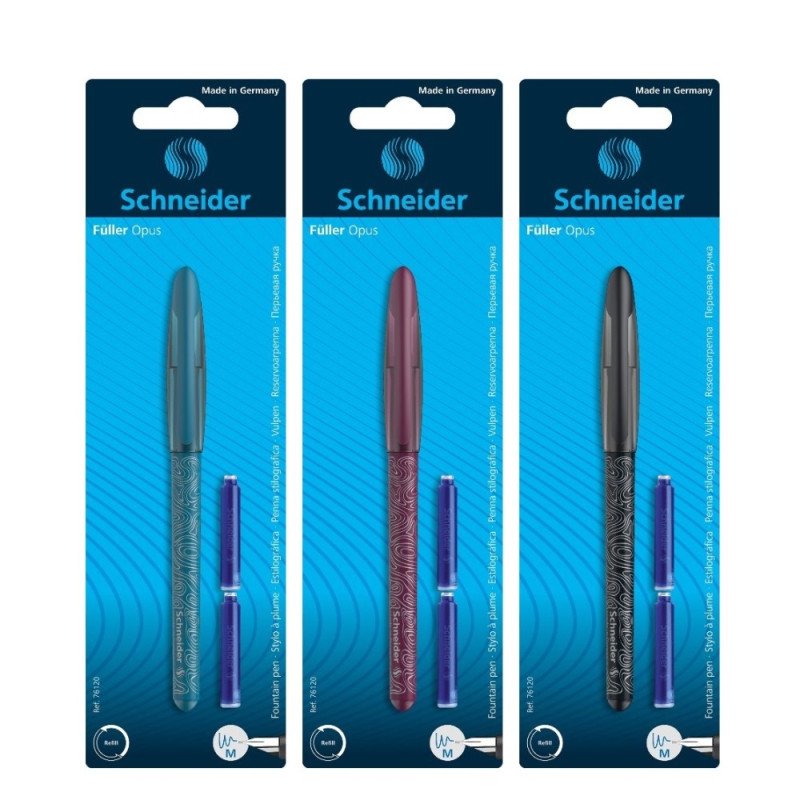 Korpusai yra juodų, mėlynų ir rudų spalvų. Rašalo spalva mėlyna. Tinka standartinės rašalo kapsulės.