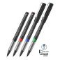 Brėžio storis 0,5 mm. Juodos, raudonos, mėlynos arba žalios spalvos rašalas. Metalinis antgalis.