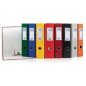 Nugarėlės plotis 75 mm. Formatas A4. Standartinis - išorinė ir vidinė viršelio pusės dengtos spalvotu plastiku, vidus - kartoninis.