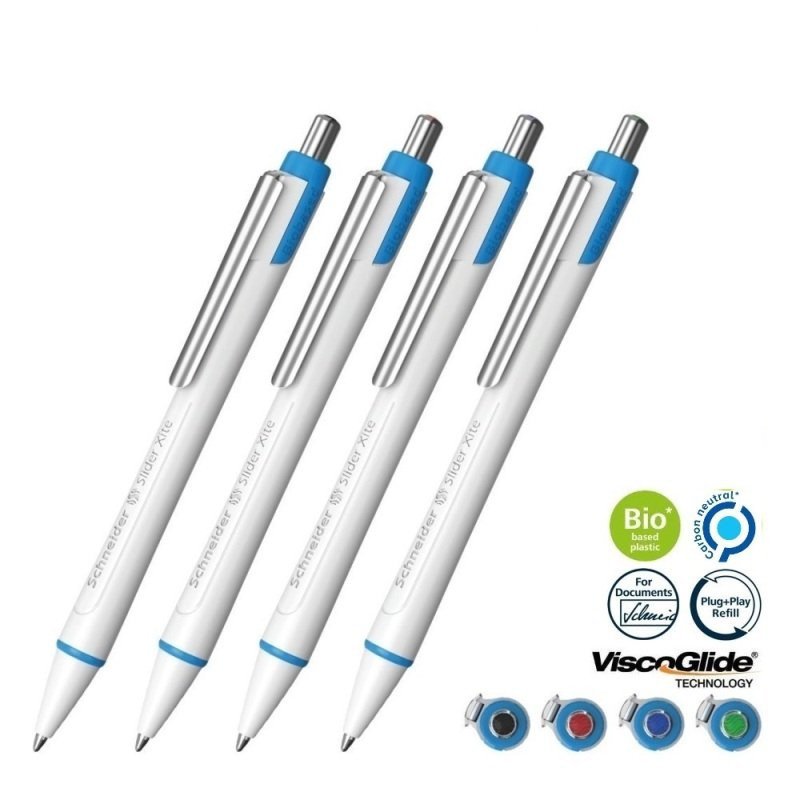 Brėžio storis 0,7 mm - XB. Metalinė įsegėlė ir antgalis. Keičiamos šerdelės Slider 710 XB. Vandeniui atsparus tušas, atitinkantis ISO 12757-2 standartą.