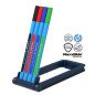 Komplektas 4 vnt. Brėžio storis 0,7 mm - XB. Inovatyvus rašiklis. Lengvas, sklandus rašymas. Patogi, ergonomiška guminė trikampio formos laikymo zona, sumažina rankos nuovargį rašant. Juodos spalvos rašalas atitinka ISO12757-2.
