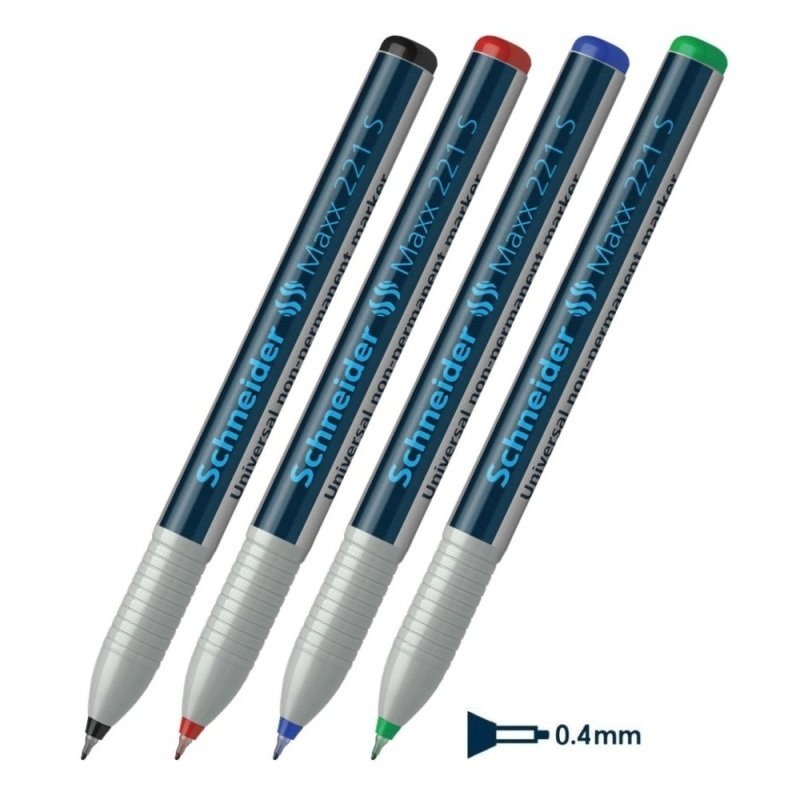 Apvali galvutė. Non-permanentinis. Brėžio storis 0,4 mm. Tinka rašyti ant įvairių paviršių. Neuždžiūna paliktas atidarytas keletą dienų.