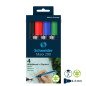 4 spalvų rinkinys. Apvali galvutė. Brėžio storis 2 – 3 mm. Neuždžiūna paliktas atidarytas keletą dienų. Plastikinis korpusas. Atsparus vandeniui, greitai džiūsta, neturi aštraus kvapo.