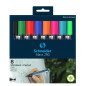 8 spalvų rinkinys. Apvali galvutė. Brėžio storis 2 – 3 mm. Neuždžiūna paliktas atidarytas keletą dienų. Plastikinis korpusas. Atsparus vandeniui, greitai džiūsta, neturi aštraus kvapo.